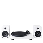 Програвач Crosley C6 оснащений пасовим приводом і тонармом з алюмінієвою трубкою, що гарантує стабільне обертання та точне зчитування сигналу. Картридж MM забезпечує чистий і деталізований звук, а вбудований фонокоректор дозволяє підключати пристрій безпосередньо до активних колонок. Активні колонки Kanto YU4 мають вбудований підсилювач, відтворюють насичений бас і чисті високі частоти, а також підтримують підключення через RCA, AUX, оптичний вхід і Bluetooth, що робить систему універсальною та зручною у використанні.