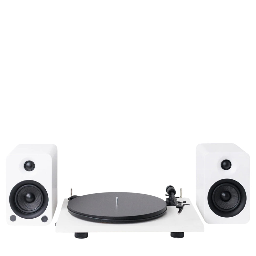 Програвач вінілу Pro-Ject Primary E Phono у поєднанні з активною акустикою Kanto YU4 створює повноцінний комплект для прослуховування вінілових платівок без додаткового обладнання. Вбудований фонокоректор у Primary E Phono дозволяє напряму підключати його до колонок, а картридж Ortofon OM5e забезпечує чисте й збалансоване звучання. Активна акустика Kanto YU4 оснащена потужним підсилювачем, якісними драйверами та широким вибором підключень — від RCA і оптичного входу до Bluetooth. Такий комплект пропонує легке налаштування, зручність у використанні та чудову якість звуку для будь-якого домашнього простору.