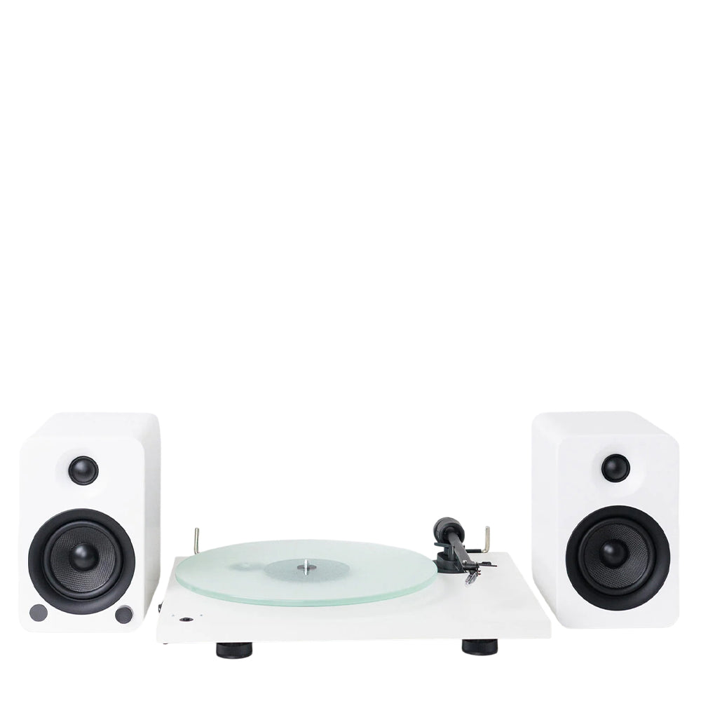 Програвач вінілу Pro-Ject T1 Phono SB OM5e у поєднанні з активною акустикою Kanto YU4 створює готовий комплект для високоякісного відтворення вінілових платівок. Система поєднує стильний дизайн програвача з сучасними можливостями підключення, забезпечуючи комфортне стерео прослуховування вдома або в студії.