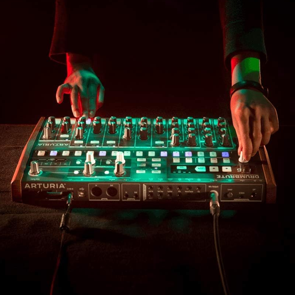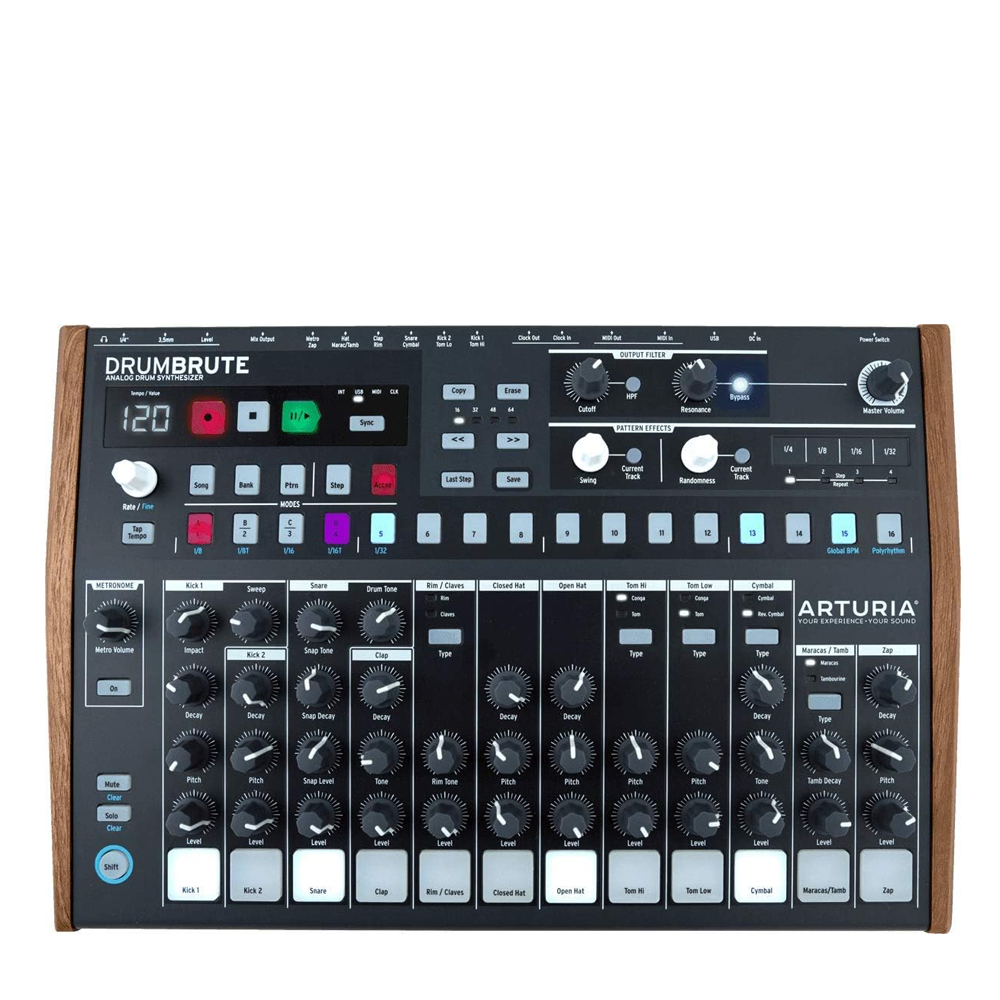 Arturia DrumBrute — це аналогова драм-машина з потужним секвенсором і 17 ударними інструментами: від бас-бочки до перкусій. Вона оснащена фільтром Steiner-Parker на майстер-виході, що дозволяє варіювати звучання.