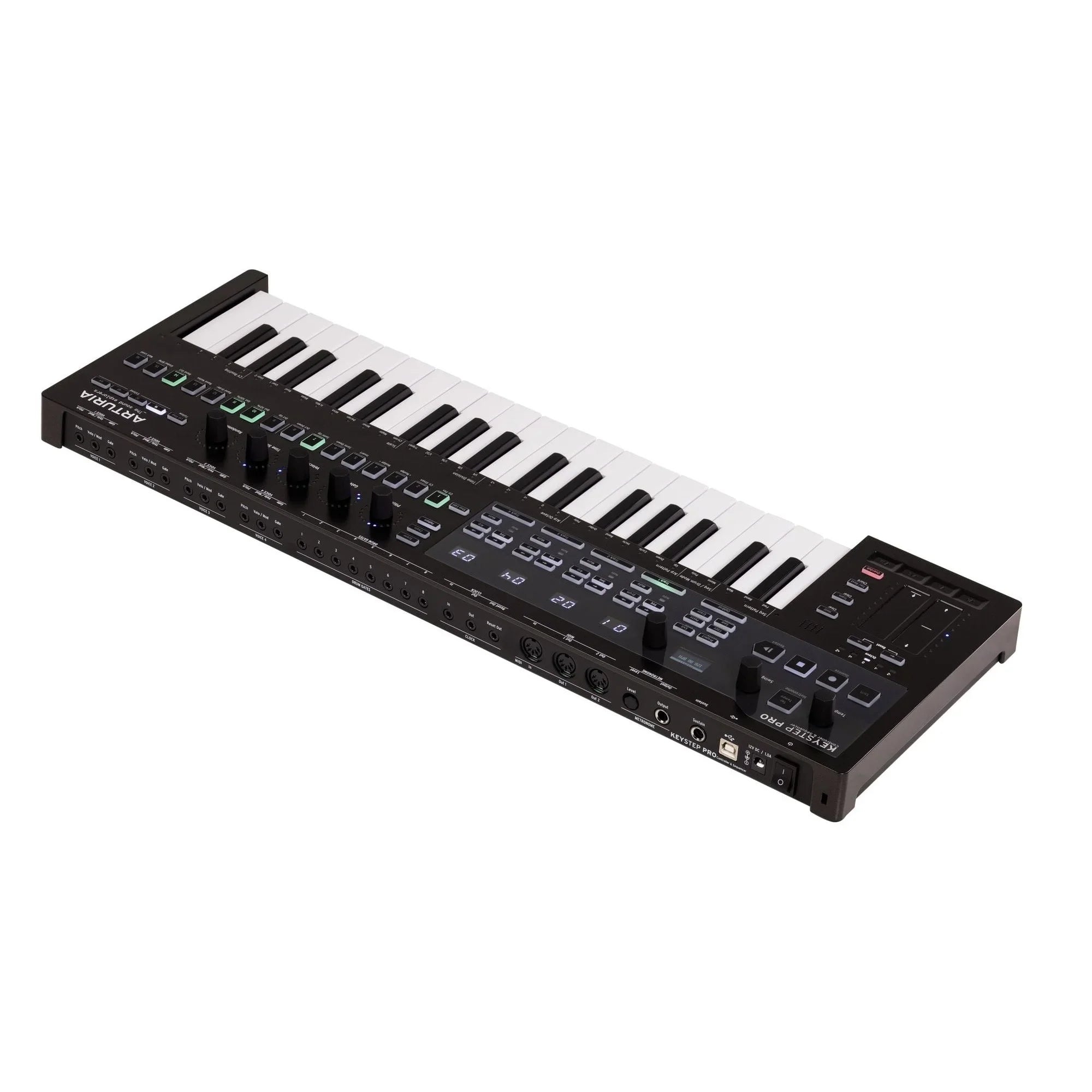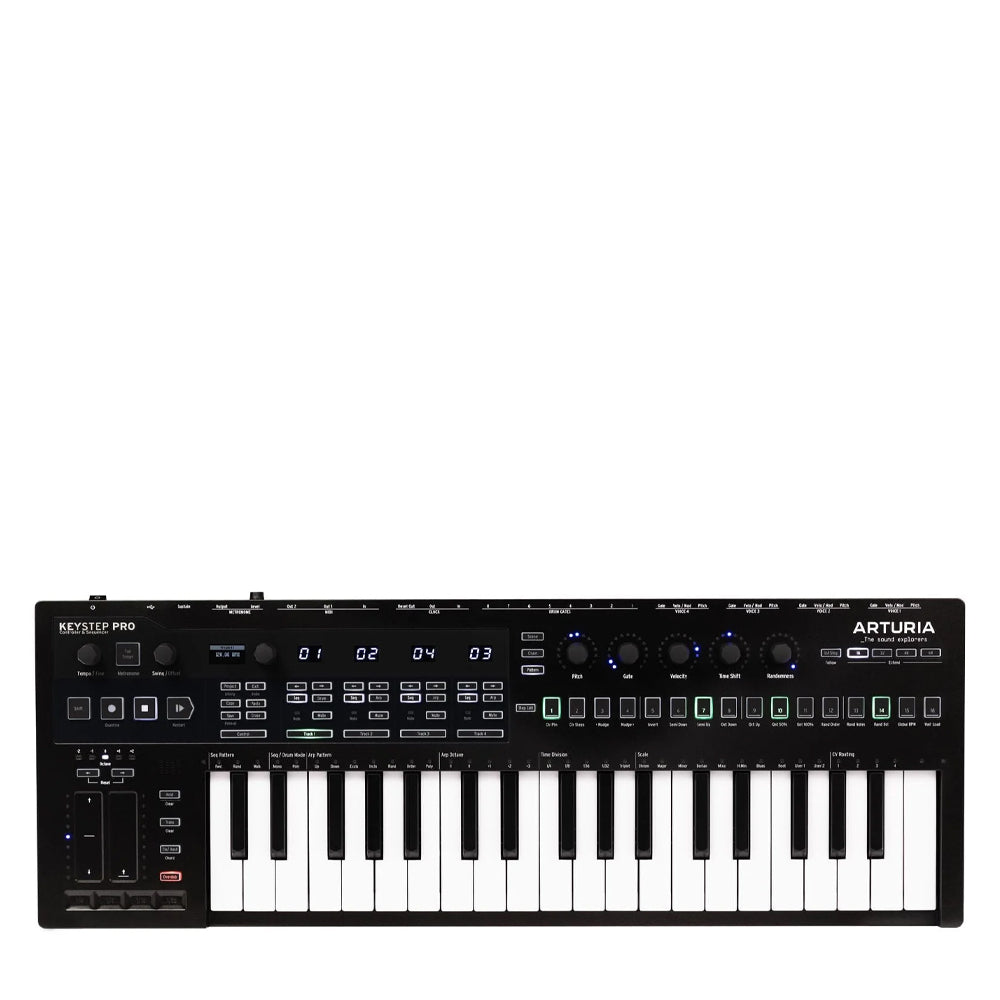 Кожна з чотирьох незалежних доріжок може працювати як секвенсор або арпеджіатор, дозволяючи створювати складні багатошарові композиції без використання комп'ютера. Вбудована виділена доріжка для ударних на 24 частини з поліритмічними можливостями робить цей інструмент ідеальним для створення ритмічних паттернів. Завдяки розширеним можливостям підключення, включаючи CV, Gate та MIDI, KeyStep Pro Chroma забезпечує повний контроль над будь-яким студійним обладнанням.