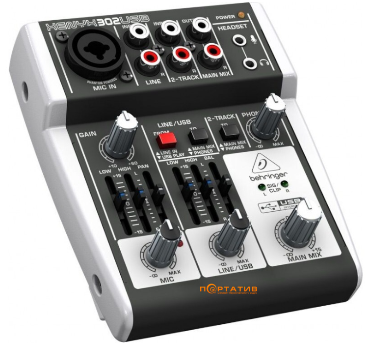 5 входів: 1 комбінований XLR/1/4" для мікрофона, 1 стерео лінійний/USB вхід, 1 стерео 2-track вхід