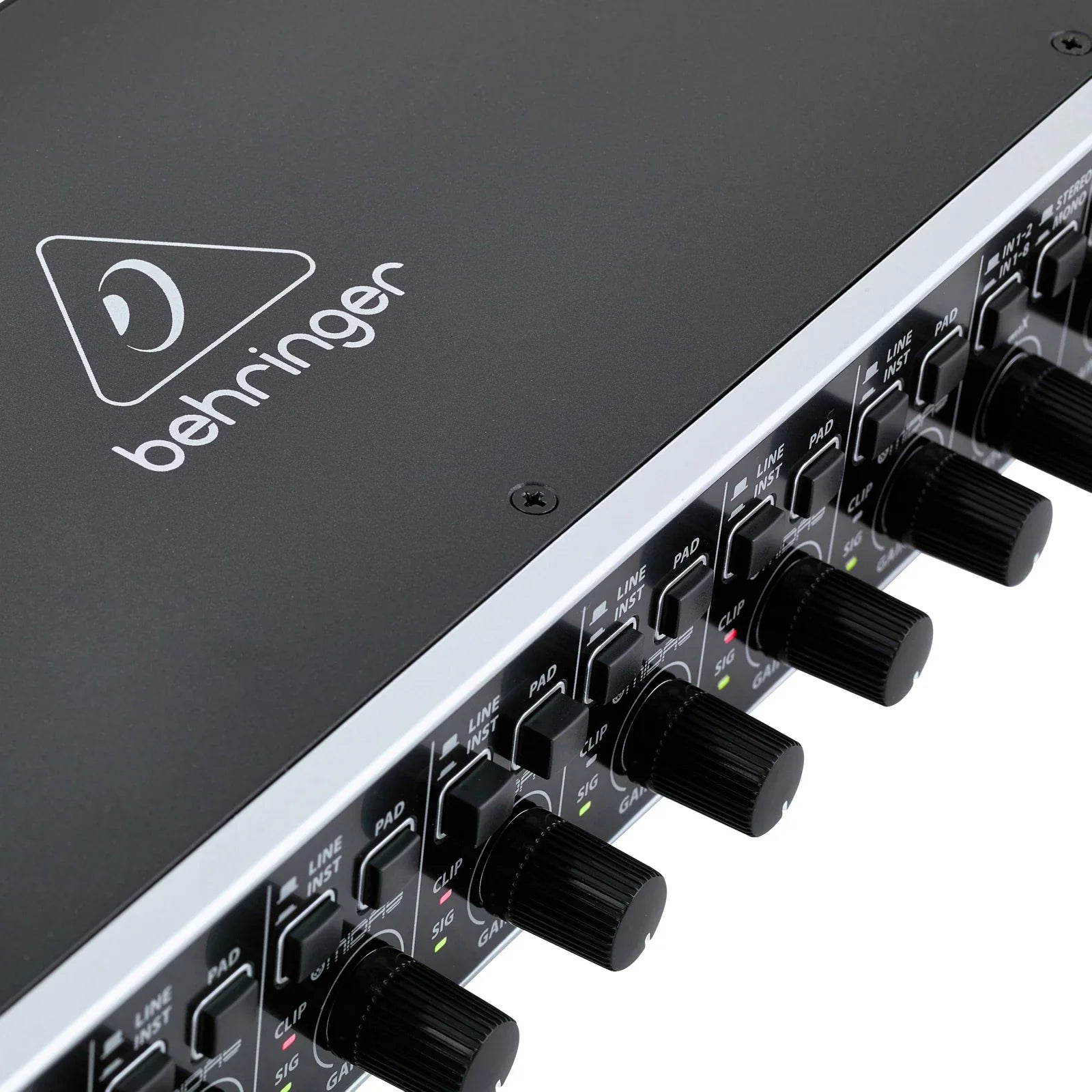 Інтерфейс оснащений 8 комбінованими XLR/TRS входами для мікрофона, лінії чи інструменту, цифровими входами ADAT і S/PDIF, а також MIDI-входом/виходом. Вихідна частина включає 8 лінійних TRS, 2 основні виходи та 2 виходи для навушників з окремими регуляторами гучності. Підключення до комп’ютера здійснюється через USB 2.0, живлення — від адаптера 12 В DC.