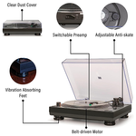 C100BT підтримує Bluetooth-вихід, тож ви можете відтворювати музику через улюблену бездротову колонку. Або скористайтеся вбудованим перемикачем предусилювача та підключіться до будь-якої стереосистеми чи активної акустики.