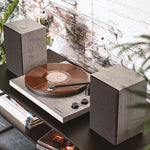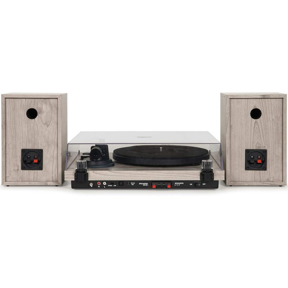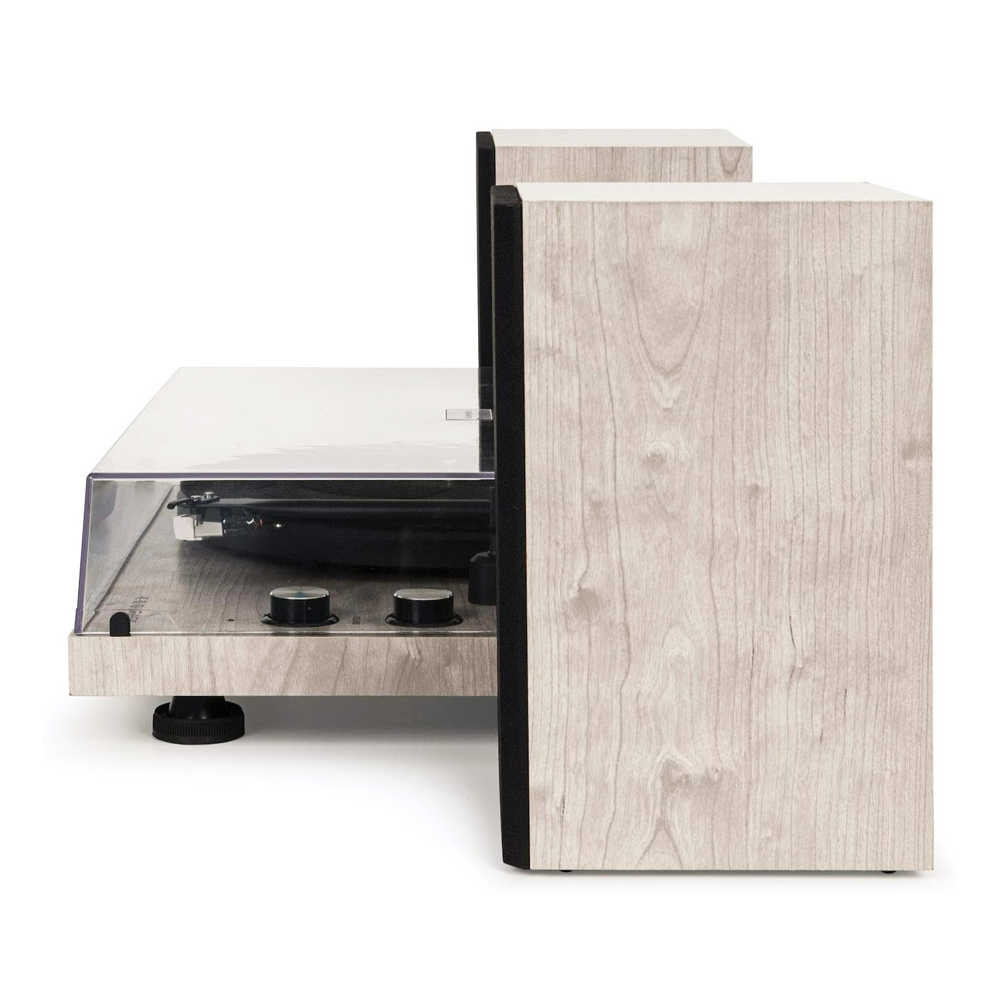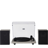 Програвач оснащений регульованим алюмінієвим тонармом, попередньо встановленим картриджем з рухомим магнітом та можливістю оновлення. До комплекту входять динаміки з середньочастотним динаміком і твітерами для кращого звучання. Просте керування через дві ручки дозволяє змінювати швидкість, гучність та включати Bluetooth для трансляції музики.