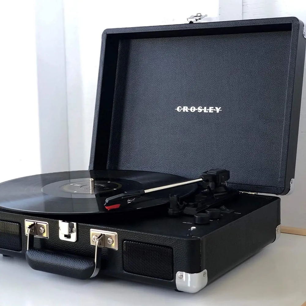 Представляємо Crosley Cruiser Deluxe ! Цей програвач, як і раніше, має чарівний корпус у вигляді валізи, але тепер ви можете налаштовувати швидкість запису за допомогою розширених налаштувань управління висотою звуку або легко синхронізуватися зі з'єднанням Bluetooth і транслювати цифрову музику прямо через вбудовані динаміки. Влаштовуйте джеми один на один з роз'ємом для навушників або під'єднуйте динаміки через порти RCA, щоб звучати голосно. Виберіть з веселки звуків, щоб почати свою пригоду з вінілом з цим портативним трьохшвидкісним програвачем.