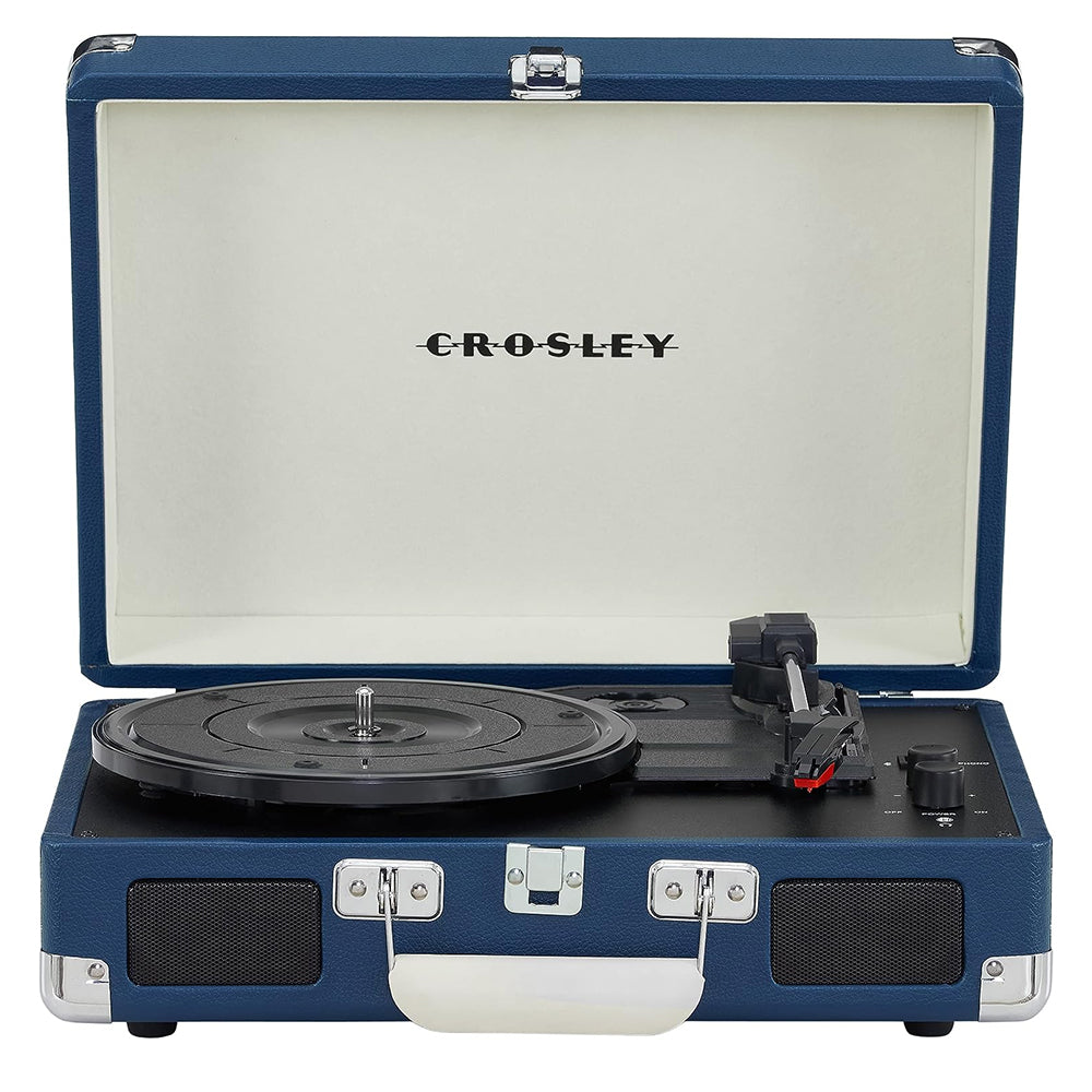 Представляємо Crosley Cruiser Deluxe ! Цей програвач, як і раніше, має чарівний корпус у вигляді валізи, але тепер ви можете налаштовувати швидкість запису за допомогою розширених налаштувань управління висотою звуку або легко синхронізуватися зі з'єднанням Bluetooth і транслювати цифрову музику прямо через вбудовані динаміки. Влаштовуйте джеми один на один з роз'ємом для навушників або під'єднуйте динаміки через порти RCA, щоб звучати голосно. Виберіть з веселки звуків, щоб почати свою пригоду з вінілом з цим портативним трьохшвидкісним програвачем.