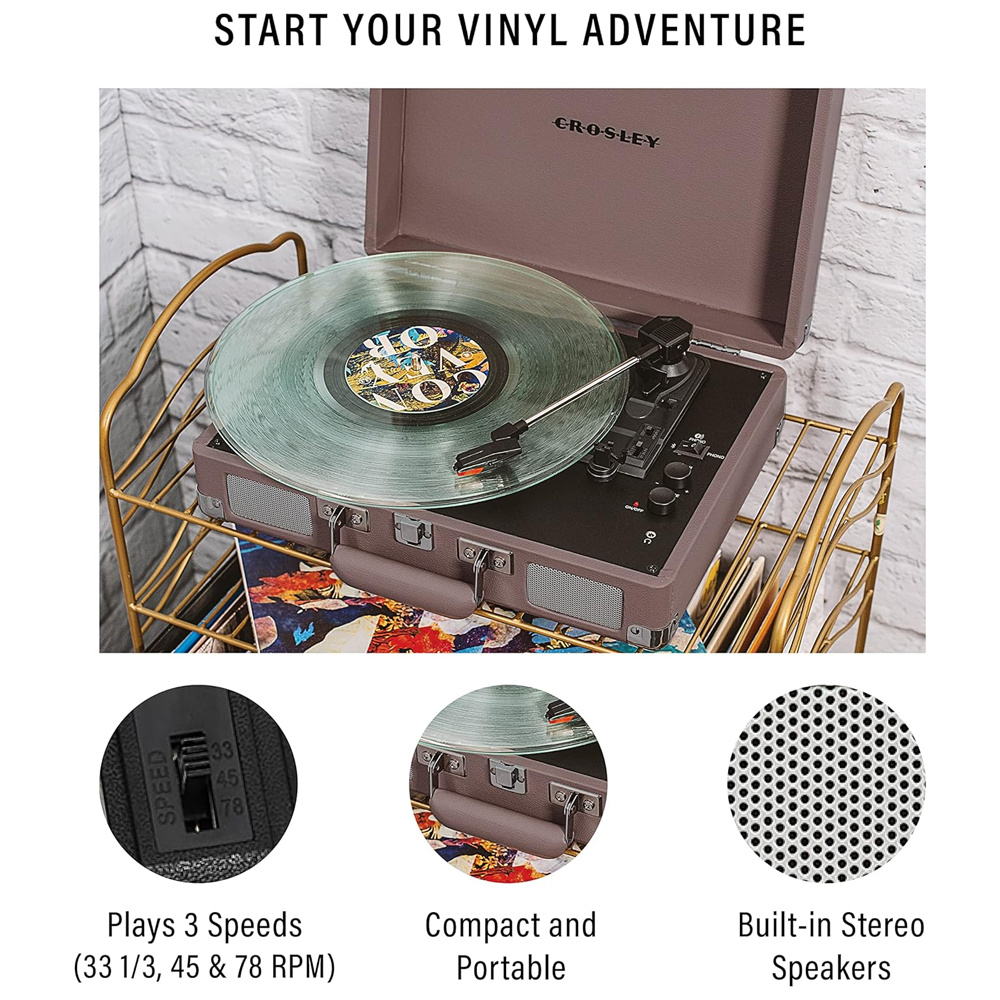 Представляємо Crosley Cruiser Deluxe ! Цей програвач, як і раніше, має чарівний корпус у вигляді валізи, але тепер ви можете налаштовувати швидкість запису за допомогою розширених налаштувань управління висотою звуку або легко синхронізуватися зі з'єднанням Bluetooth і транслювати цифрову музику прямо через вбудовані динаміки. Влаштовуйте джеми один на один з роз'ємом для навушників або під'єднуйте динаміки через порти RCA, щоб звучати голосно. Виберіть з веселки звуків, щоб почати свою пригоду з вінілом з цим портативним трьохшвидкісним програвачем.