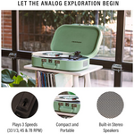 Цей портативний програвач із трьома швидкостями (33 1/3, 45, 78 об/хв) готовий до гри прямо з коробки. Вбудовані стереодинаміки дозволяють просто підключати та грати, є виходи RCA, якщо ви хочете підключити Discovery до ресивера або активних динаміків.