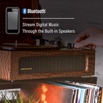 Програвач підтримує три швидкості обертання платівок, а також оснащений AUX-входом і RCA-виходами для підключення навушників або зовнішньої акустики. Його динаміки потужністю 10 Вт дарують м’який і чистий звук, якого цілком вистачить для домашнього прослуховування.