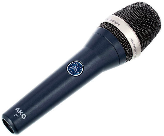 AKG C7 — професійний динамічний вокальний мікрофон, створений для сценічного та студійного використання. Він забезпечує чисте і чітке звучання голосу з добре вираженими середніми частотами, що дозволяє вокалу виділятися у міксі. Модель відзначається високою надійністю та стійкістю до ударів і падінь, що робить її ідеальною для концертів, живих виступів і тривалого професійного використання.