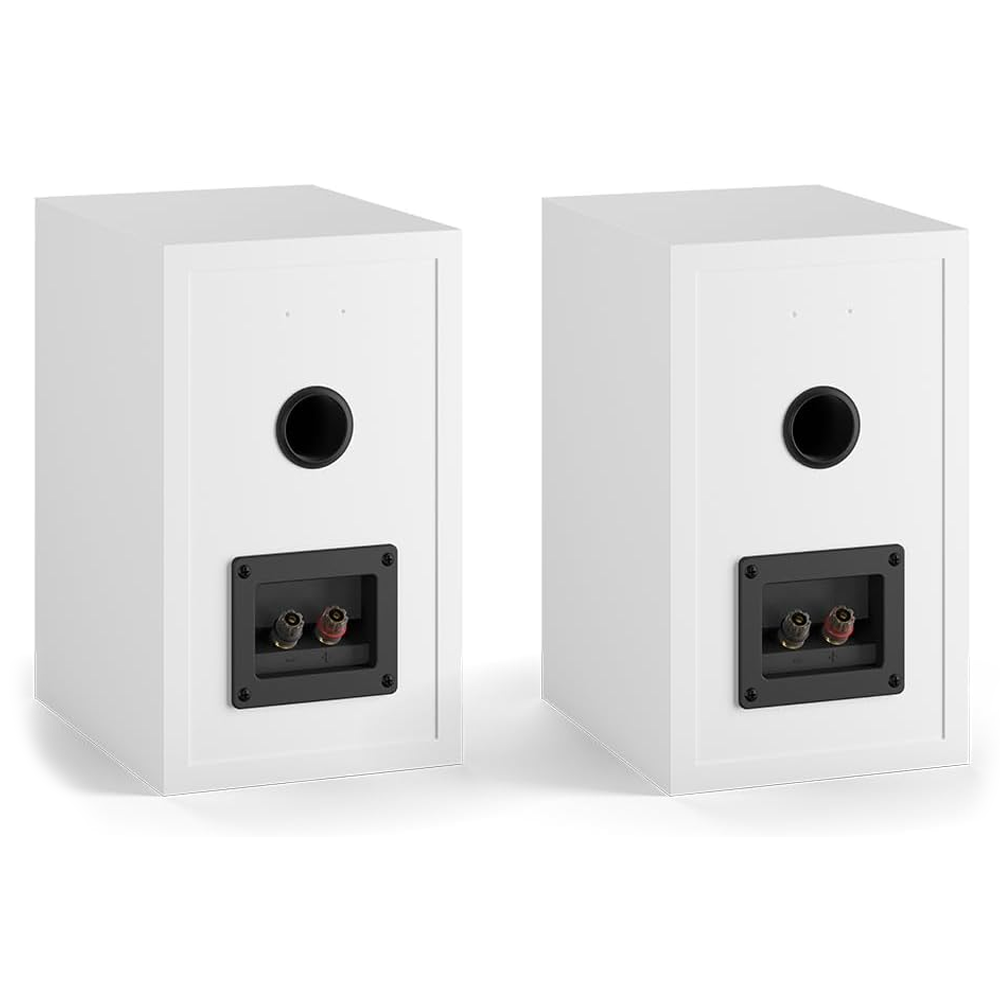 Колонки оснащені 5¼-дюймовим вуфером із дифузором із дерево-паперової маси та легким тканинним твітером, удвічі легшим за більшість аналогів. Така комбінація забезпечує чисте, деталізоване звучання та широке розсіювання звуку, яке зберігає якість навіть поза центром прослуховування.