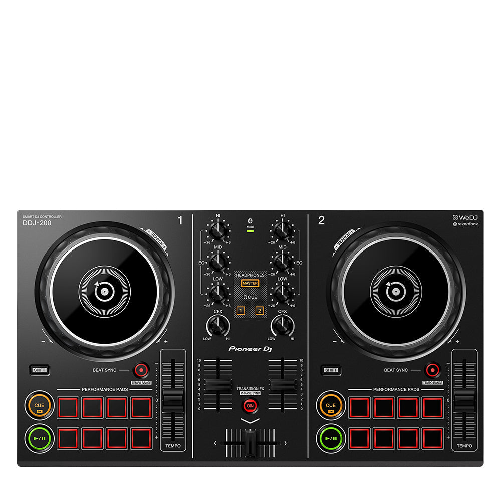 Pioneer DDJ-200 — компактний і легкий контролер для початківців та мобільних діджеїв. Він підтримує підключення до смартфонів, планшетів і комп’ютерів, працює з популярними DJ-додатками, включаючи rekordbox, WeDJ та djay, що робить його ідеальним для навчання та невеликих виступів.