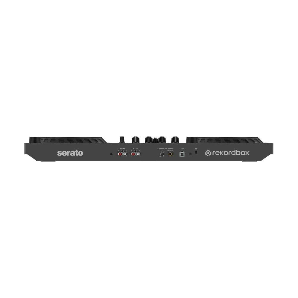 Pioneer DDJ-FLX6-GT — це 4-канальний DJ-контролер із оновленим дизайном у графітовому кольорі та інтуїтивною панеллю, що нагадує клубні установки CDJ + DJM. Він сумісний з Rekordbox, Serato DJ Pro, VirtualDJ, а також з Traktor Pro 3 (через mapping-файл) — підходить для діджеїв, які працюють у різних програмних екосистемах.