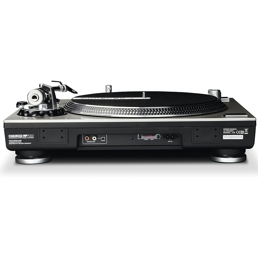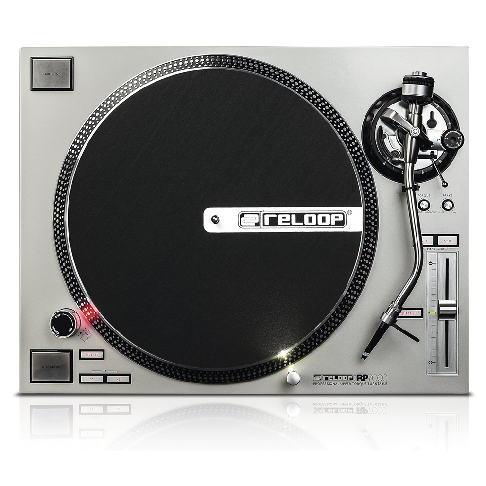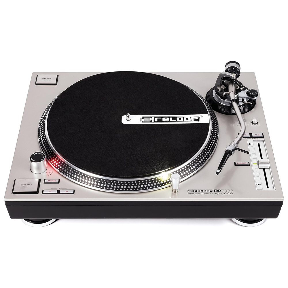 Reloop RP-7000 MK2 — професійний вініловий програвач для діджеїв із прямим приводом і S-подібним тонармом з антискейтинговою функцією. Підтримує три швидкості: 33⅓, 45 і 78 об/хв. У порівнянні з попередньою версією, модель отримала більш стійкий до вібрацій корпус та збільшений пусковий момент (з 1,6 до 2,8 кг/см). Також оновлено конструкцію тонарма та додано клему заземлення на задній панелі. У комплекті — сліпмат, противага, кабель RCA з заземленням і кабель живлення.