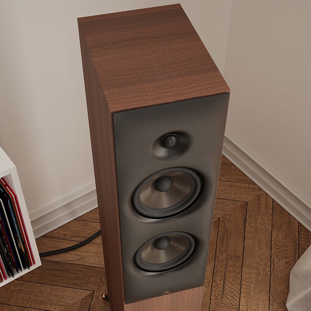 Модель оснащена 28-мм твітером із просоченим м’яким куполом RASC та внутрішнім ARID-куполом, що разом із камерою особливої конструкції поглинає понад 95% резонансів. За низькі частоти відповідає пара 7-дюймових динаміків із дифузорами з базальтового сендвіча BSC — вони забезпечують глибоке, щільне, але водночас швидке та контрольоване звучання.