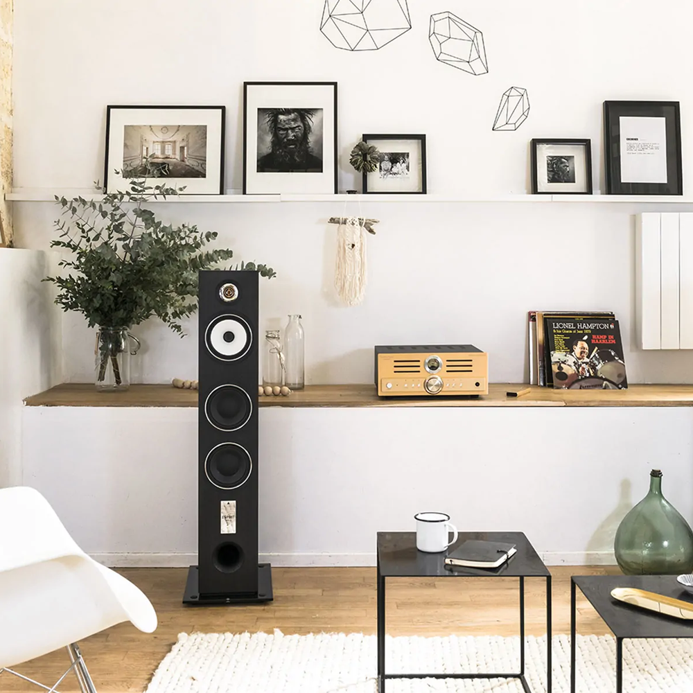 Triangle Gaia Ez — це підлогова акустична система, яка поєднує елегантний дизайн і високоякісне звучання. Завдяки компактним розмірам (980 × 230 × 315 мм) вона ідеально підходить для середніх і великих приміщень площею від 10 до 30 м².