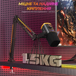 Завдяки повністю металевій конструкції та надійним шарнірним з'єднанням, тримач впевнено витримує важкі професійні мікрофони. Вбудовані канали для кабелів дозволяють приховати дроти всередині корпусу, забезпечуючи охайний вигляд робочого місця.