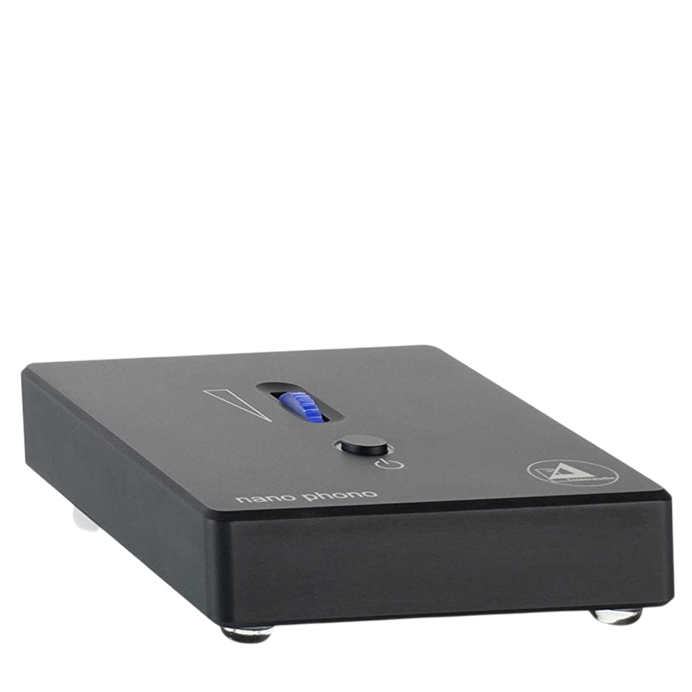 ClearAudio Nanophono V2 - Black — компактний фонокоректор преміального рівня, виконаний у лаконічному чорному корпусі з масивного алюмінію. Зовнішній вигляд позбавлений зайвих деталей, оскільки основний фокус зроблено на безкомпромісній якості обробки сигналу. Схемотехніка пристрою побудована на основі ретельно відібраних компонентів, що мінімізують шуми та перешкоди.