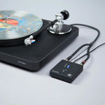 Універсальність моделі дозволяє працювати з картриджами типів MM та MC. На нижній панелі розташовані перемикачі для точного налаштування під конкретну головку звукознімача. Виносний блок живлення усуває ризик виникнення фонових наводок, забезпечуючи кришталево чисте звучання з глибокою деталізацією.