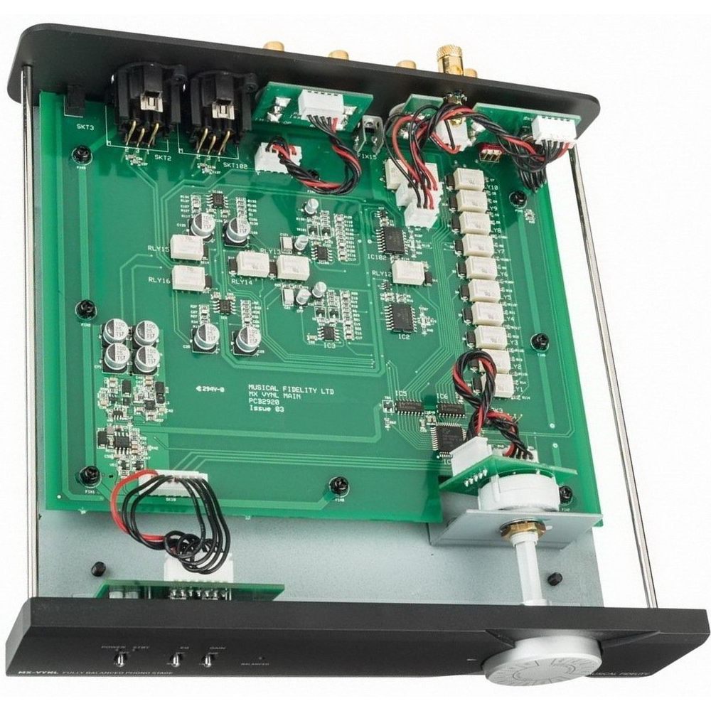 Схема MX-VYNL повністю балансна, і він підтримує оновлений стандарт RIAA, що дозволяє коригувати частотну характеристику до 80 кГц. Технічні характеристики вражають: відхилення від стандартної кривої лише 0,1 дБ, співвідношення сигнал/шум для MC — 98 дБ, а перевантажувальна здатність — 24 дБ.