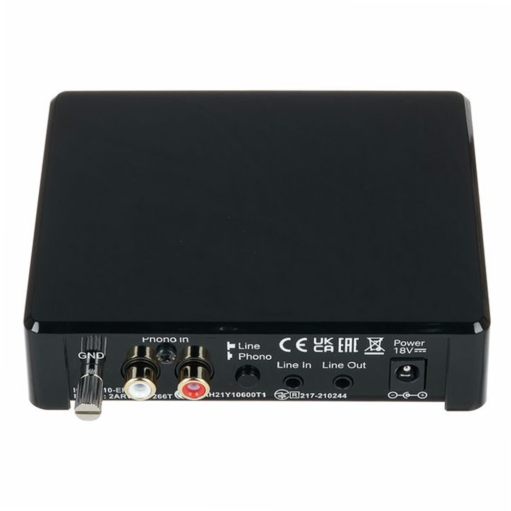 Phono Box E BT має два входи — фоно і лінійний (RCA) та 3,5 мм, а також два виходи: аналоговий (3,5 мм) і бездротовий. Завдяки точній корекції, низькому рівню шумів та якісним компонентам він забезпечує чисте і динамічне звучання, характерне для вінілу. Компактний корпус зі сталевим екрануванням і зовнішнє живлення на 18 В мінімізують перешкоди й гарантують стабільну роботу.