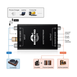 Фонокоректор має вхідний опір 47 кОм і забезпечує чистоту аудіосигналу зі співвідношенням сигнал/шум 85 дБ. Для зручного підключення передбачені стандартні RCA-роз’єми, а вбудований перемикач MM/MC дозволяє швидко адаптувати пристрій під використовуваний картридж. Живлення здійснюється через micro USB, що робить його сумісним із різними джерелами енергії, зокрема блоками живлення, ноутбуками та ПК.