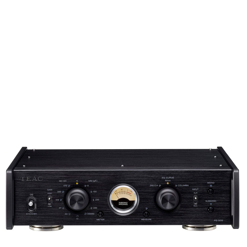TEAC PE-505-B — стаціонарний фонокоректор флагманського рівня, розроблений для справжніх поціновувачів вінілу. Він побудований за повною балансною схемотехнікою «подвійне моно», що забезпечує ідеальне розділення каналів та мінімальний рівень шумів навіть при роботі з дуже слабким сигналом від головки звукознімача.