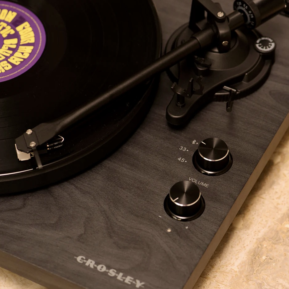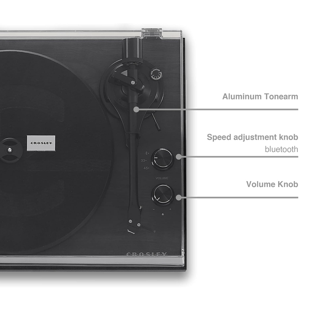 Crosley C62 — стильний програвач вінілу з вбудованим Bluetooth-приймачем, який дозволяє перетворити його на бездротову колонку для вашого смартфона. Цей двошвидкісний програвач (33 1/3 та 45 об/хв) має МДФ-цоколь з штучного горіха та сталевий диск для мінімізації вібрацій.