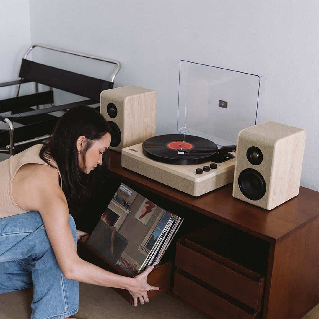 Колонки Joan потужністю 50 Вт разом із програвачем Dean створюють чудову атмосферу і додають елегантності інтер'єру. Цей комплект ідеальний для тих, хто цінує якість звуку та стиль.