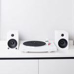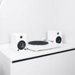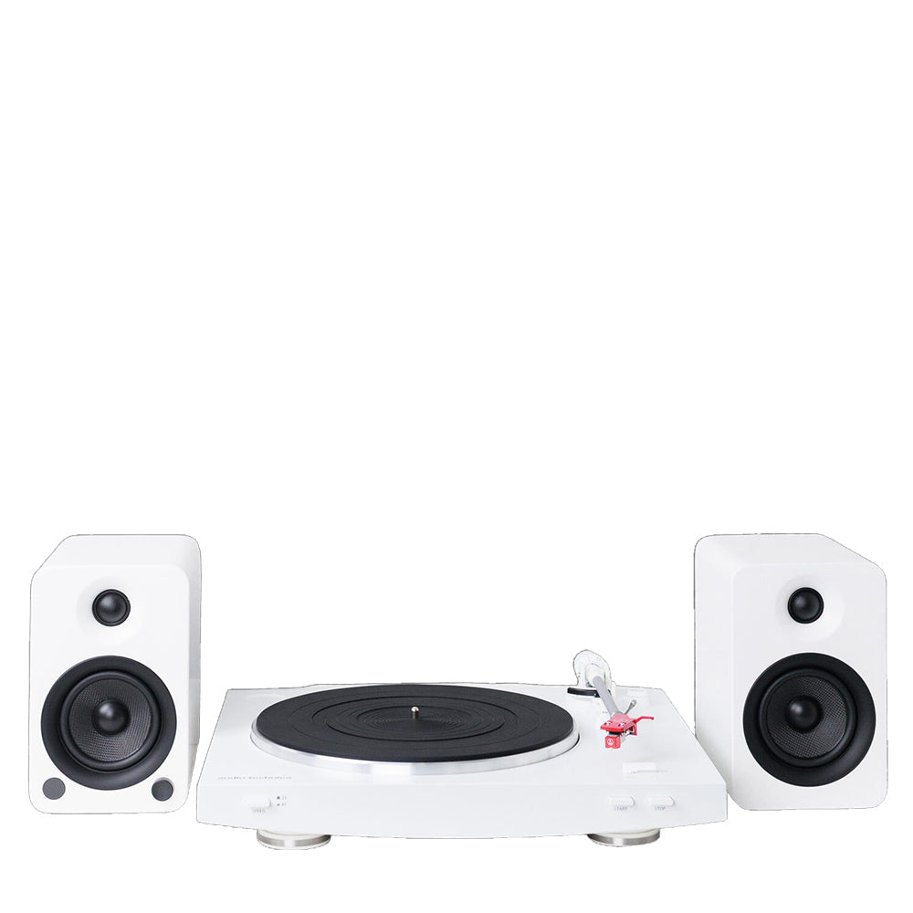 Програвач AT-LP3XBT оснащений автоматичним пасовим приводом і картриджем AT-VM95C, що гарантує чисте та деталізоване звучання. Пристрій підтримує бездротову передачу через Bluetooth, що дозволяє підключати його до колонок без кабелів. Активні колонки Kanto YU4 мають вбудований підсилювач, відтворюють глибокий бас і прозорі високі частоти, а також підтримують підключення через RCA, AUX і Bluetooth, роблячи систему універсальною для різних джерел звуку.