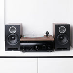 Програвач вінілу Rega Planar 2 у поєднанні з акустичною системою Elac Debut та інтегрованим підсилювачем Denon PMA-900 у кольорі Walnut створює повноцінний комплекс для відтворення вінілових платівок із високою точністю та глибоким динамічним звучанням. Така система поєднує британську увагу до деталей, німецьку акустичну інженерію та японську електронну надійність.
