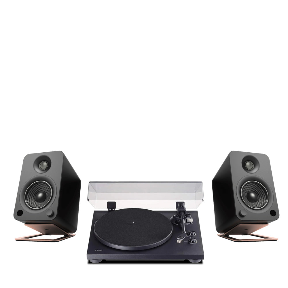 Програвач вінілу TEAC TN-280BT-A3 у комплекті з активною акустикою Kanto YU4 та підставками Kanto S4 створює повноцінну систему для якісного прослуховування платівок без потреби у додатковому обладнанні. Поєднання елегантного дизайну та сучасних функцій забезпечує насичене стереозвучання й зручність у використанні як для аналогового, так і бездротового відтворення.