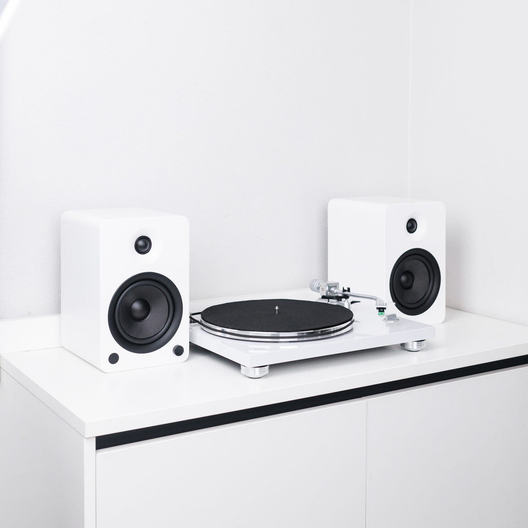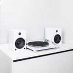 Програвач TN-3B-SE оснащений пасовим приводом, тонармом із точним балансуванням і картриджем Audio-Technica, а вбудований фонокоректор MM дозволяє підключати пристрій безпосередньо до активних колонок. Активні колонки Kanto YU6 мають вбудований підсилювач, відтворюють глибокий бас і прозорі високі частоти, а також підтримують підключення через RCA, AUX, оптичний вхід і Bluetooth, що робить систему універсальною для різних джерел звуку.