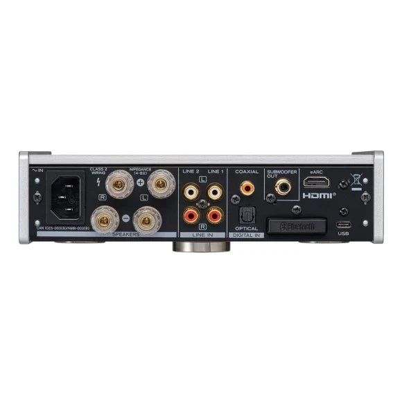 TEAC AI-303 — інтегральний підсилювач компактного класу, побудований на енергоефективних модулях Hypex NCore. Модель спроєктована для роботи з цифровими джерелами високої роздільної здатності та інтеграції в сучасні мультимедійні системи. Вбудований USB-ЦАП підтримує нативне відтворення форматів DSD512 та PCM до 32 біт / 384 кГц, що забезпечує точне декодування аудіосигналу з мінімальним рівнем фазового шуму.