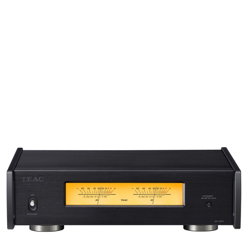 TEAC AP-507-B — преміальний двоканальний підсилювач потужності з флагманської серії Reference 500, виконаний у фірмовому ультракомпактному корпусі формату А4. Модель базується на інноваційних модулях NCOREx від Hypex, що пройшли спеціальне налаштування інженерами TEAC для досягнення максимально реалістичної та багатовимірної звукової сцени. Підсилювач відрізняється надзвичайною гнучкістю: він може працювати як класичний стерео-оконечник, у режимі Bi-amping або у мостовому режимі (BTL), видаючи вражаючі 350 Вт потужності.
