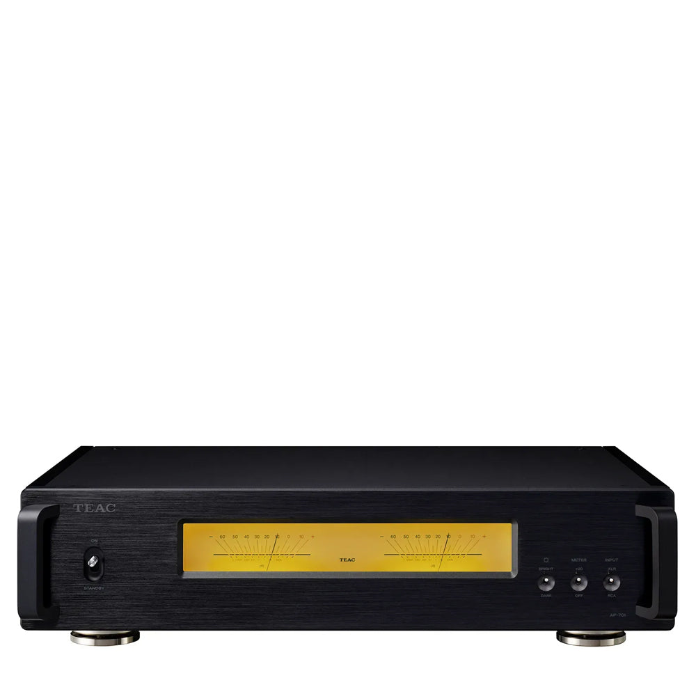 Масивний алюмінієвий корпус зі стрілочними індикаторами на передній панелі не лише підкреслює приналежність до елітної серії Reference 700, а й слугує ефективним вібророзв’язком. Завдяки високій потужності та здатності працювати в мостовому режимі (Bi-Amp), система з легкістю розкриває потенціал навіть найбільш вибагливої підлогової акустики. TEAC AP-701 — вибір для професійних аудіофільських інсталяцій, де пріоритетом є абсолютна точність відтворення та тотальний контроль над кожною нотою.