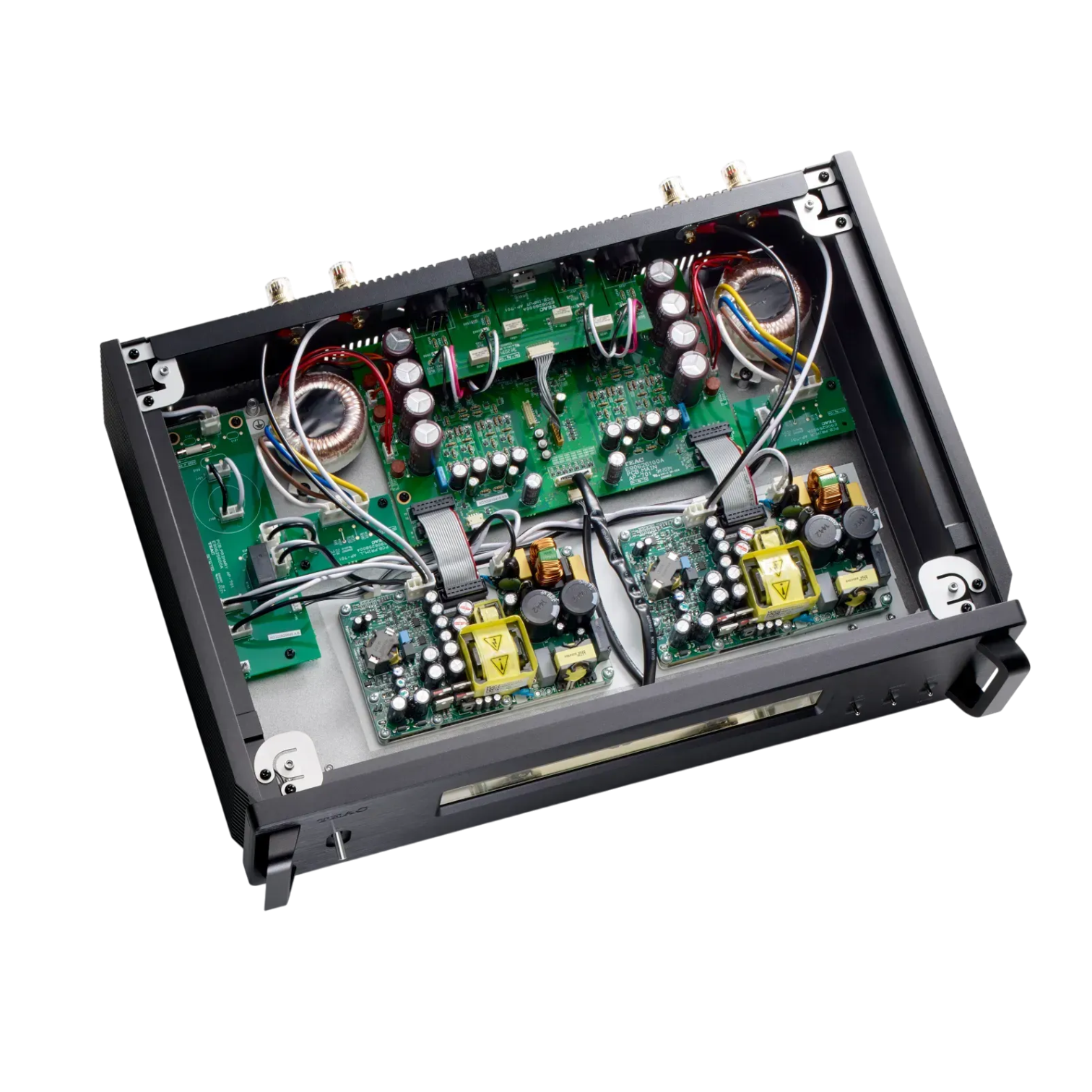 TEAC AP-701 — флагманський стереофонічний підсилювач потужності, побудований за безкомпромісною архітектурою «подвійне моно». В основі конструкції лежать два високоефективні модулі Hypex Electronics Ncore, які пройшли індивідуальне налаштування інженерами компанії для досягнення фірмового музичного почерку. Повністю незалежні тракти — від вхідних каскадів до двох масивних тороїдальних трансформаторів живлення — гарантують виняткову роздільну здатність, відсутність перехресних завад та миттєву динамічну реакцію на складних музичних пасажах.