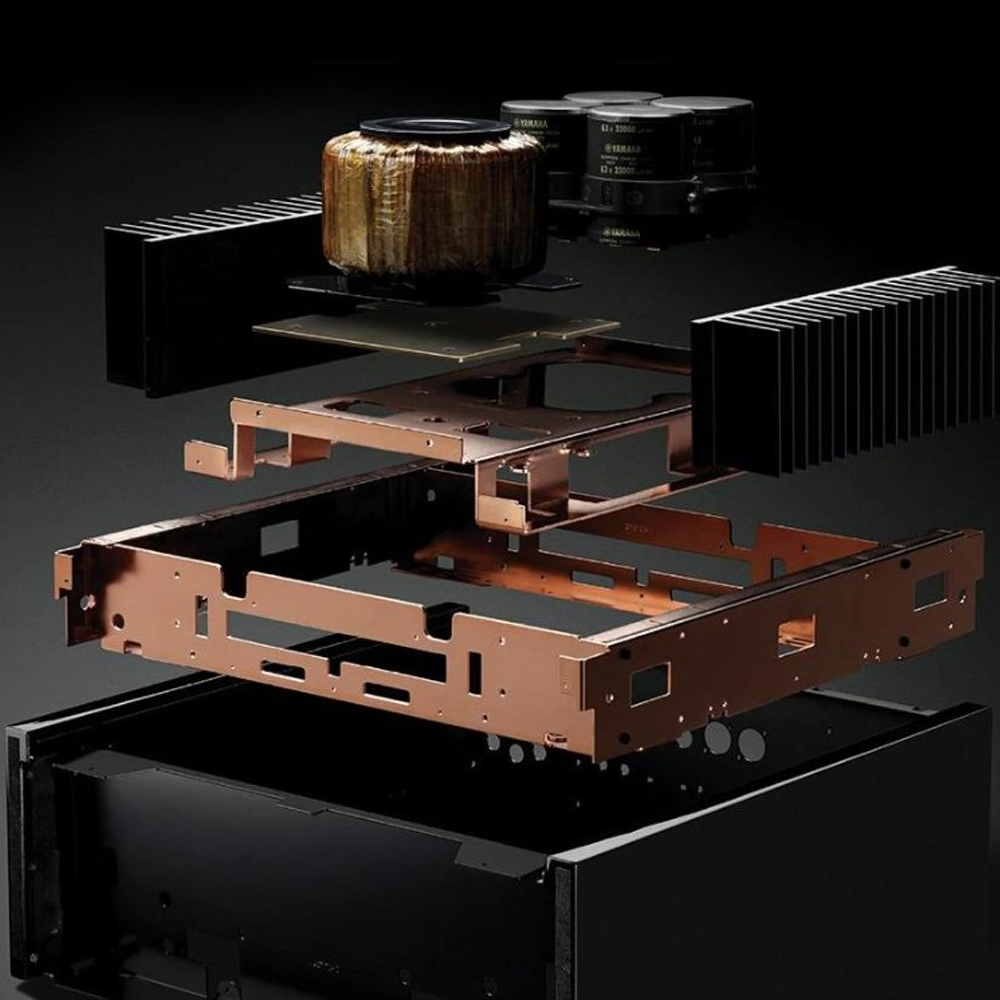 Корпус підсилювача M-5000 спроектований з урахуванням максимальної жорсткості, щоб зменшити вібрації та забезпечити оптимальну якість звуку.