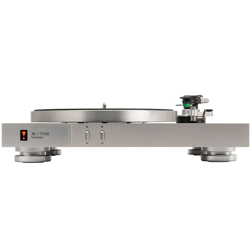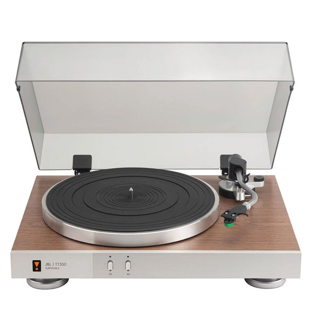 Станьте ближче до своєї колекції платівок з JBL TT350 Classic. З твердим горіховим корпусом, важким алюмінієвим верстатом та зігнутим алюмінієвим тонармом, TT350 Classic є свідченням радості музики та вінілових платівок.
