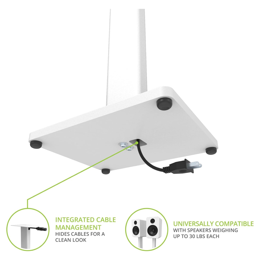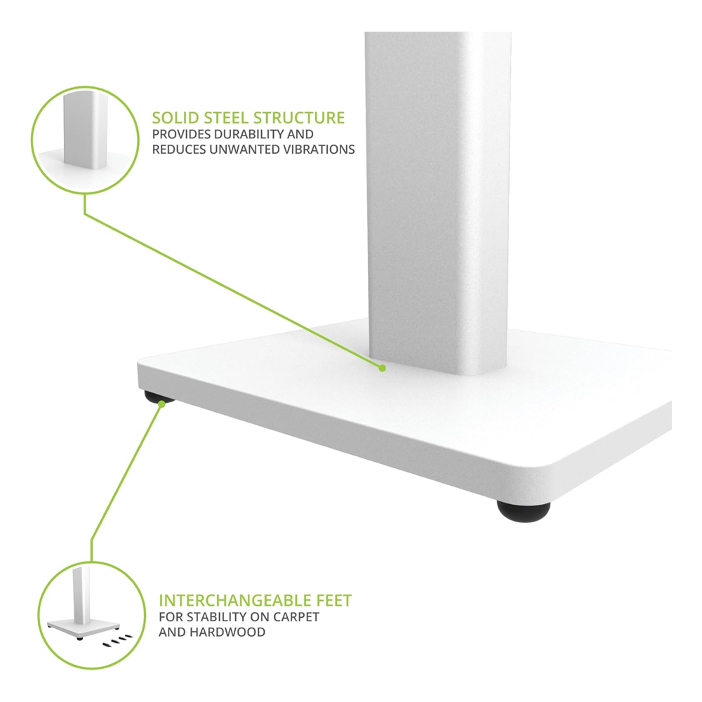 Верхні платформи оснащені силіконовими прокладками для захисту колонок і точного контакту. У комплекті є гумові ніжки для твердих підлог і металеві шипи для килимових поверхонь, що гарантує надійну фіксацію. ST34 підходять для більшості поличкових колонок і гармонійно вписуються в сучасний інтер’єр.