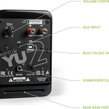 YU2 мають вбудований ЦАП через USB, тож їх легко підключити до комп’ютера без зовнішньої звукової карти. Також передбачені AUX-вхід та вихід на сабвуфер для розширення системи. Завдяки компактному дизайну з акуратним оздобленням ці колонки ідеально поєднують якісний звук і стильний вигляд для сучасного робочого або домашнього простору.