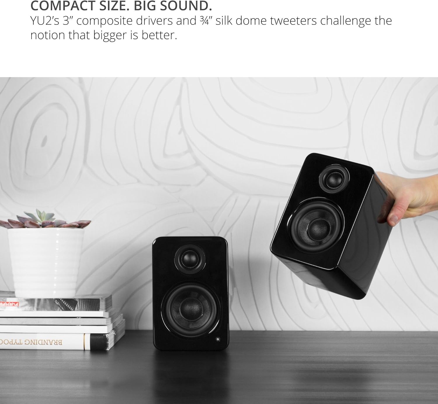 Kanto YU2 — це компактні активні поличкові колонки, створені для настільного використання та невеликих приміщень. Вони оснащені 3-дюймовими динаміками з композитним дифузором і 0,75-дюймовими твітерами з шовковим куполом, що забезпечують чисте та збалансоване звучання з приємним басом і деталізованими високими частотами.