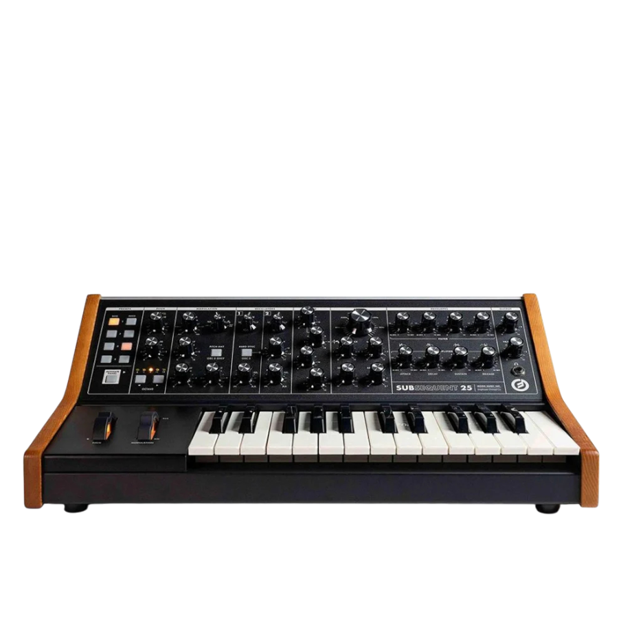 MOOG SUBSEQUENT 25 — це компактний 2-нотний парафонічний аналоговий синтезатор, який поєднує класичну аналогову архітектуру Moog із сучасними можливостями саунд-дизайну. Його 25 напівзважених клавіш із чутливістю до швидкості натискання дозволяють точно передавати динаміку гри, а цифрове управління забезпечує зручність та швидкий доступ до глибокого аналогового звучання. SUBSEQUENT 25 ідеально підходить для музикантів, які хочуть створювати багатошарові тексти та фірмові аналогові патчі в компактному форматі.