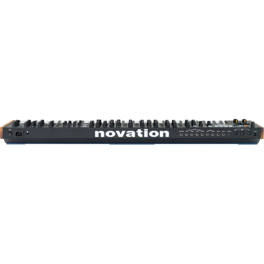 Усередині — подвійні аналогові фільтри, керовані підсилювачі (VCAs) та три стадії аналогового дисторшну, які додають звучанню характерної теплоти й насиченості. Прилад оснащений повним набором підключень: MIDI In/Out/Thru, USB, CV Mod-In, стереовиходи, два AUX-виходи та аудіовхід для обробки зовнішніх сигналів. Завдяки інтуїтивній панелі керування, вбудованим ефектам і продуманій ергономіці Novation Summit є універсальним рішенням для професійних продюсерів і виконавців, які прагнуть максимальної глибини звукового дизайну.