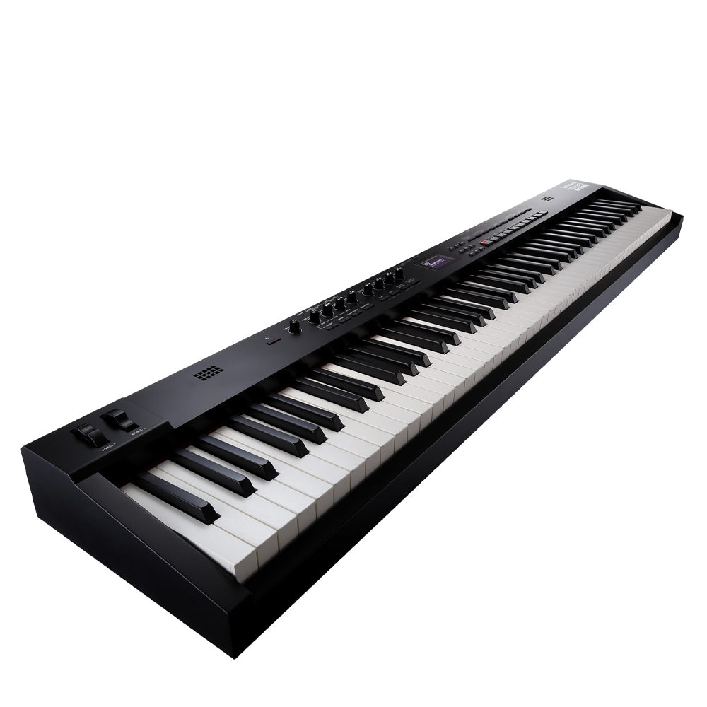 RD-88EX створений для максимальної зручності: він має вбудовану акустичну систему, що є рідкістю для професійних сценічних піаніно, і дозволяє проводити репетиції без моніторів. Піаніно також виступає потужним майстер-контролером (8 зон) та має спеціальні режими інтеграції з Apple MainStage, що дозволяє музикантам легко керувати програмними інструментами прямо з клавіатури. Це ідеальний баланс між професійним контролем та мобільністю.