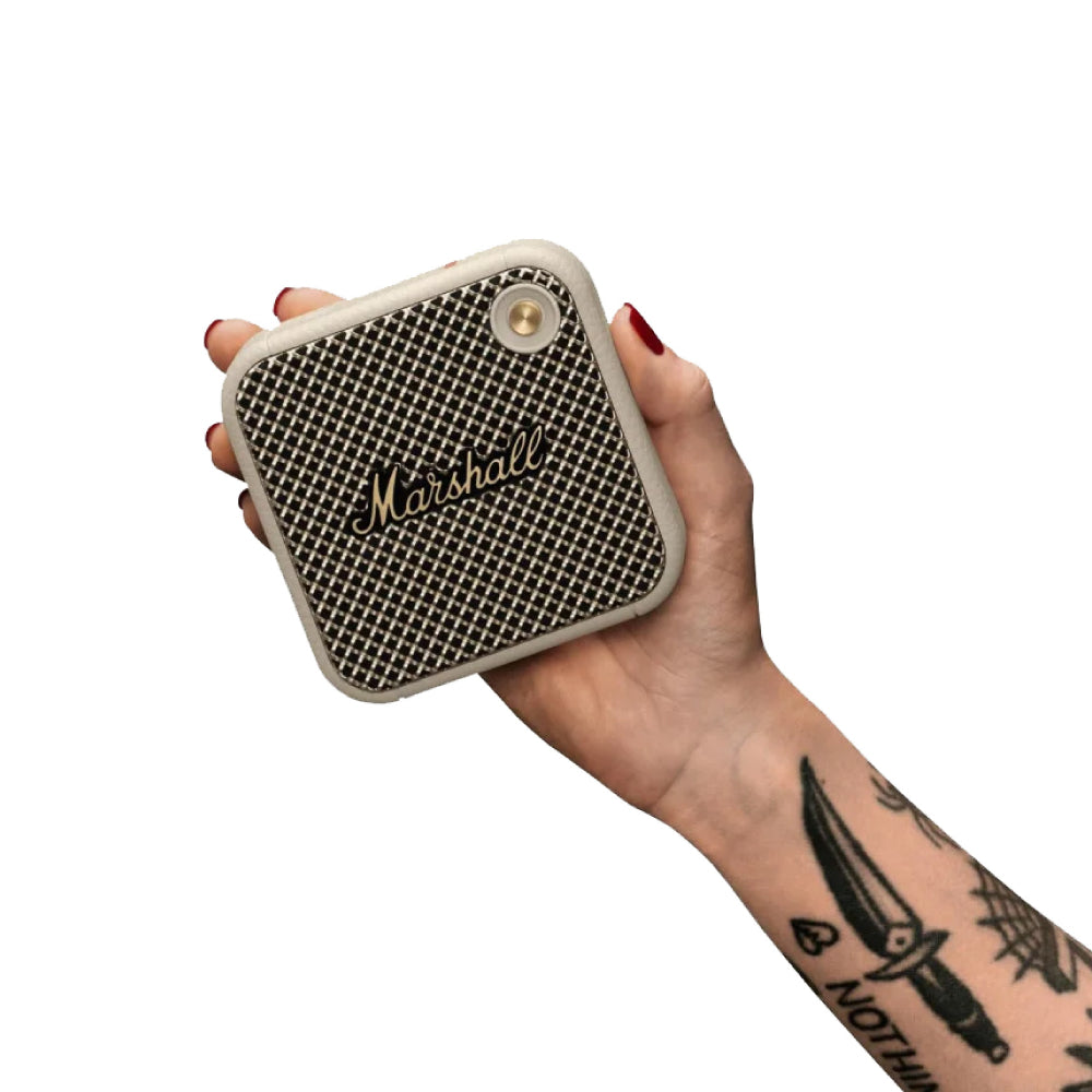 Marshall Willen — це найкомпактніша портативна колонка легендарного британського бренду, створена для тих, хто хоче взяти характерний звук Marshall із собою будь-куди. Незважаючи на мініатюрні розміри, вона видає потужний і насичений звук із виразними басами та чіткими високими частотами.