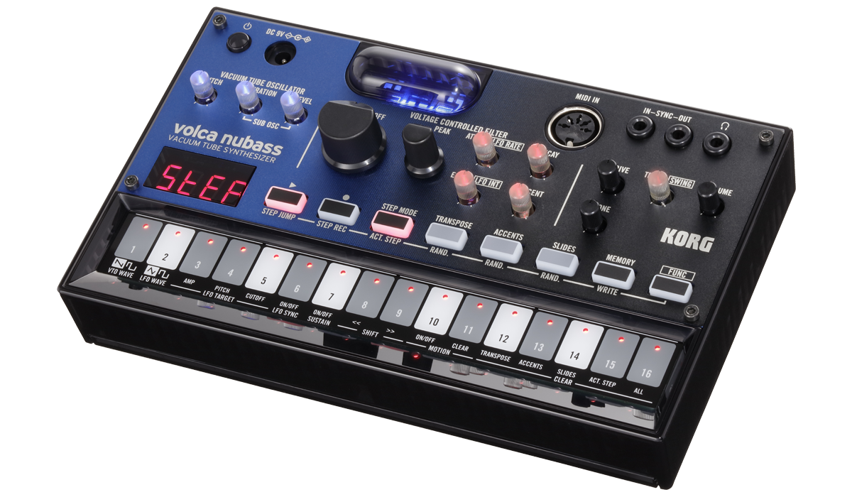 Пристрій оснащений 16-кроковим секвенсером із motion sequencing для автоматизації параметрів і створення динамічних патернів. Вбудовані Sync In/Out та MIDI-з’єднання дозволяють інтегрувати його з іншими пристроями серії Volca або зовнішніми MIDI-контролерами. Інтуїтивний інтерфейс із ручками для швидкого редагування параметрів забезпечує гнучке створення ритмічних та басових ліній.