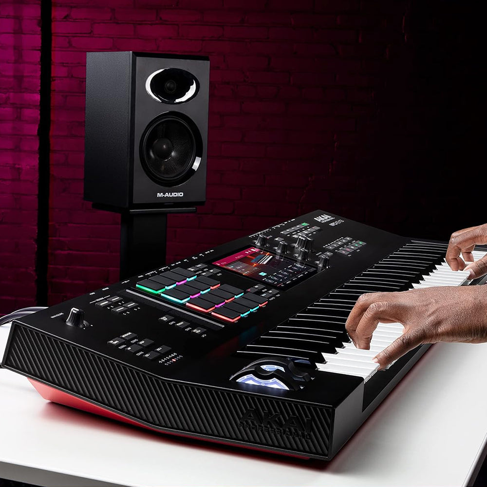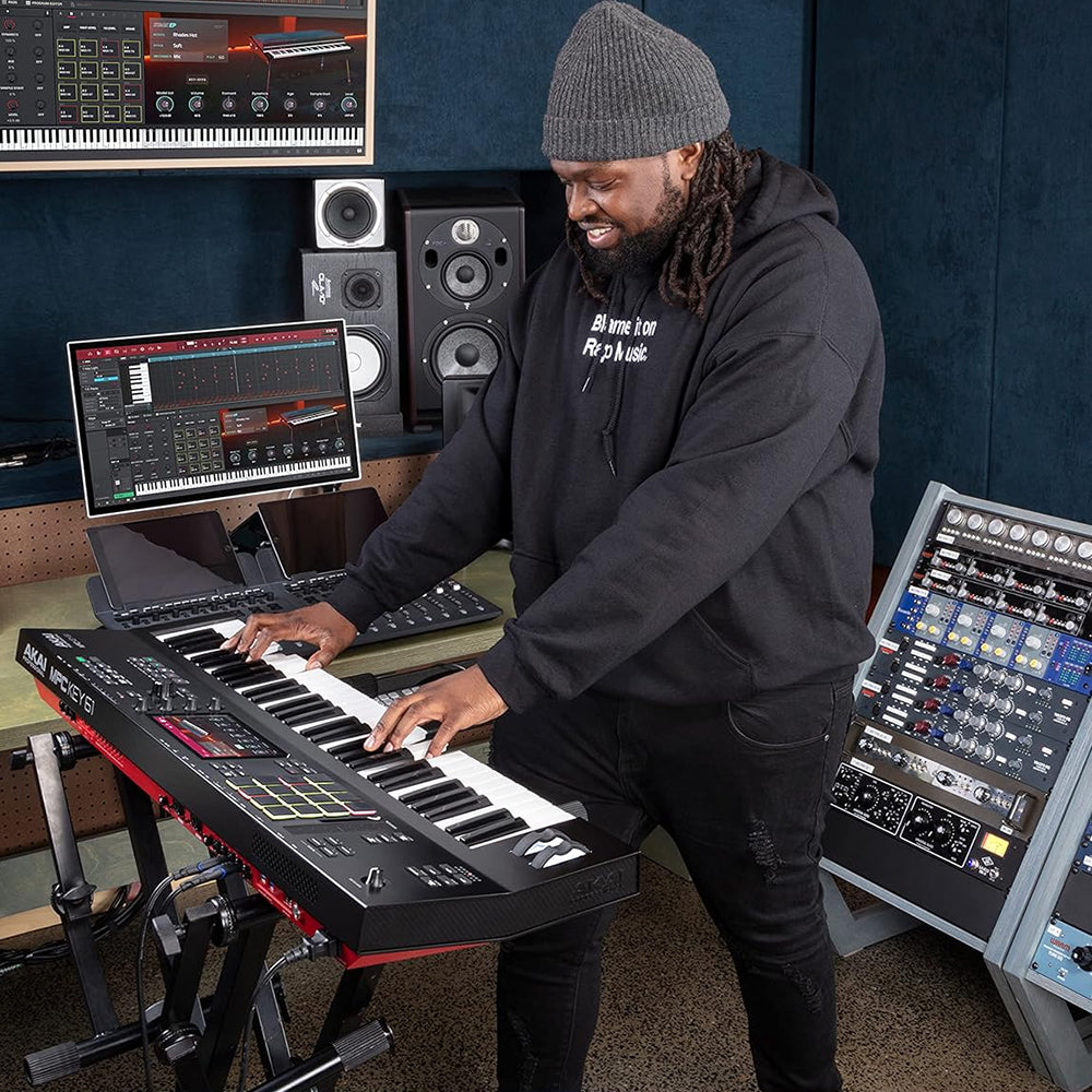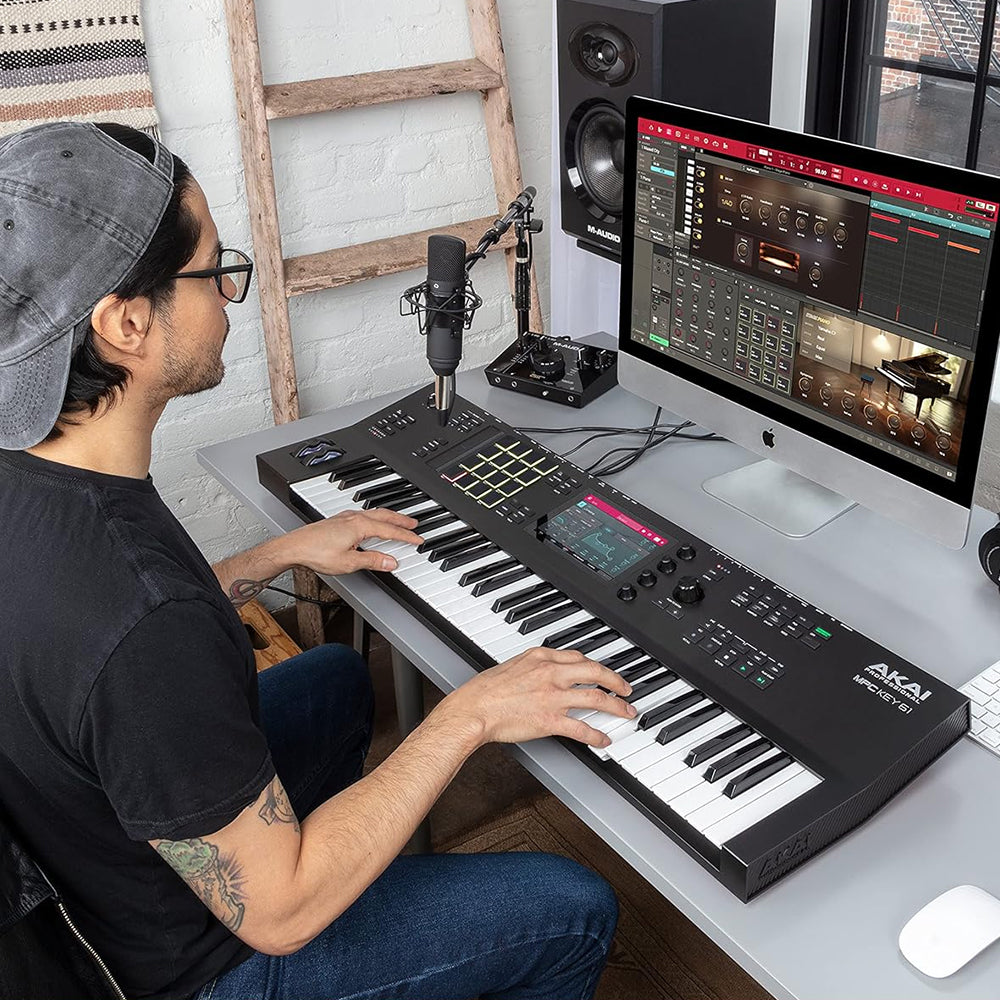 Akai MPC Key 61 — це автономна музична станція з 61 чутливою до сили натискання клавішею з aftertouch, яка поєднує клавіатуру з потужними можливостями семплера та секвенсора. Вона дозволяє грати мелодії та акорди з високою чутливістю, водночас забезпечуючи повний контроль над треками та плагінами.