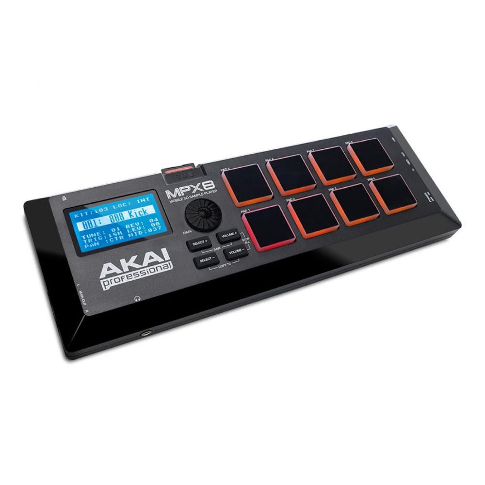 MPX8 підтримує завантаження власних семплів через SD-карту, а також пропонує інтуїтивне управління гучністю, панорамою і тембром кожного пэда. Завдяки компактним розмірам і легкій вазі його зручно брати з собою для виступів або роботи у студії.